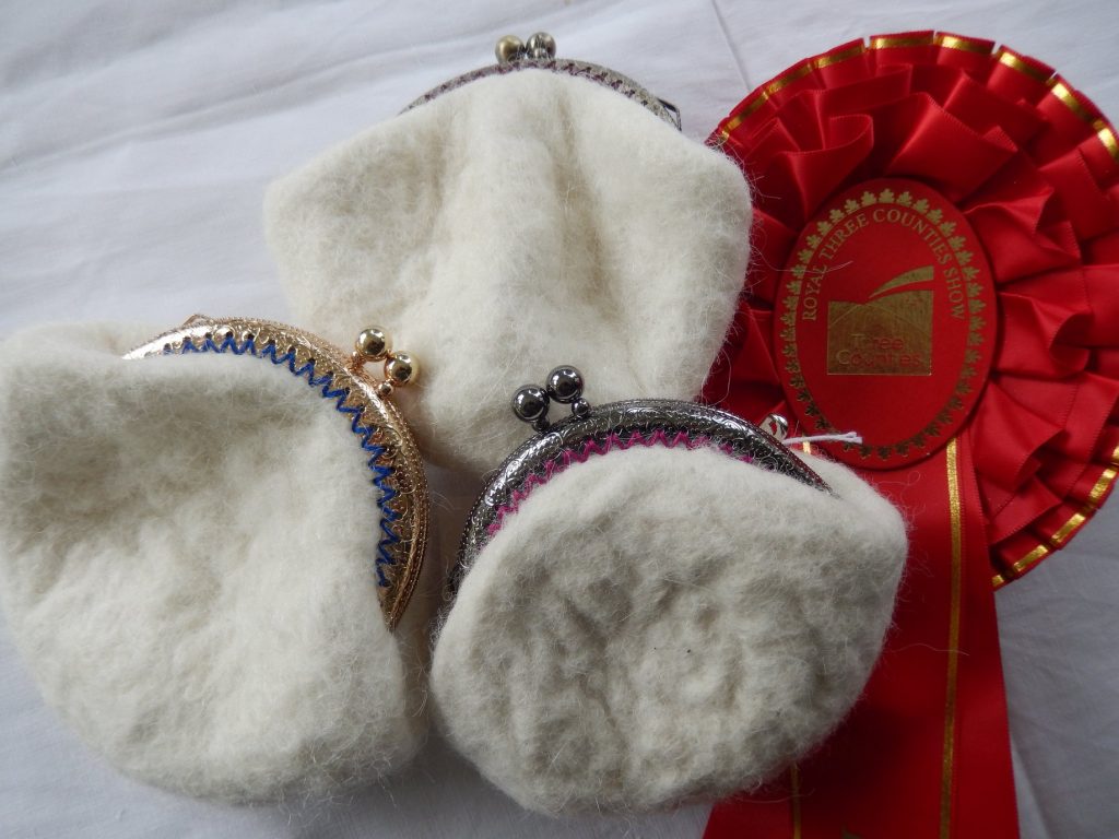 The inaugural West Shires Alpaca Group craft show was held at the Royal Three Counties Show.  We wanted to showcase alpaca fibre, giving the public the full picture starting with the animals in the halter show, then the shorn fleeces in the fleece show, how the best fibre can be used as demonstrated by members of the Worcestershire Guild of Weavers, Spinners and Dyers who were spinning and weaving and finally a display of the huge variety of items that can be made with alpaca fibre in the craft show.